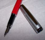This is my Retro 1951 Diplomat FP that is one of my regular daily writers. It cost a mere $7 in the clearance section of my local (now closed) Tuesday Morning store in 2010. Brushed chrome cap and orange barrel give it a working pen style that I compare to my Parker 45s. I'm not trying to impress anybody with any of them, but they work very well laying down a hot line of verbage when desired.