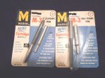 I was tempted to load the red one, but got to thinking about Marsh's solvent-based ink, and thought it might be good to see what's in it first. The back of the card says "Cartridge contains felt wick loaded with T-INK" and the Marsh Web site shows both dye and pigment T-ink types still in production. I downloaded the MSDS for red T-ink and found that it's 73% xylene, 16% ethylbenzene, about 1/2% toluene, and some other nasty things. Keep in mind that this is the current formulation; it's likely that these ancient cartridges could contain even nastier stuffs.