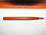 Parker #18 Lucky Curve in smooth orange hard rubber, no flaws except the lack of a cap and "TF" scratched into the bottom over the "18." The nib is good, though tips are slightly misaligned; looks like an EF with fair flex to it.