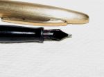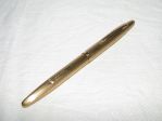 She has a couple of small dents not visible in the photos, a brassed spot on the top of the cap that you can see in the two middle photos, a twisted and solidified sac (that I was able to break apart and salvage the breather tube), and a 14K gold nib with a fair amount of flex to it. Not bad for $11, including shipping, two more pens, and a nice old Autopoint pencil.