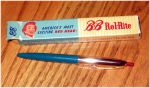 The cap-actuated repeating pencil and matching old-school ballpoint are only marked "BB" at the tops of their clips. I didn't find anything immediately on-line for a pen maker called "BB," but then I looked at the other ballpoint and scrubbed the gunk off the clip that obscured it's imprint, "Rol-Rite." Searching for that turned up a couple of references to "Rol-Rite Red Head" pens: