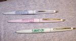 Here are a few advertising specialty BIC Clic BPs I picked up along the way. The Clic was a serious (? - my opinion) challenger to Papermate BPs when they came out. They were pretty cheap compared to a Papermate Malibu or Parker Jotter, and somewhat attractive. The Clic had two main flaws: 1) The BIC refills were unpleasant to use, with thick, hard flowing ink that usually left an uneven line and blobs on your homework assignments. 2) The tip of the pen where the point exited the barrel was fragile plastic, and the writer usually ended up with a broken tip that left the refill point exposed and looked foolish.