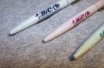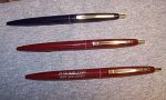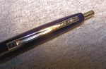 Here are a few advertising specialty BIC Clic BPs I picked up along the way. The Clic was a serious (? - my opinion) challenger to Papermate BPs when they came out. They were pretty cheap compared to a Papermate Malibu or Parker Jotter, and somewhat attractive. The Clic had two main flaws: 1) The BIC refills were unpleasant to use, with thick, hard flowing ink that usually left an uneven line and blobs on your homework assignments. 2) The tip of the pen where the point exited the barrel was fragile plastic, and the writer usually ended up with a broken tip that left the refill point exposed and looked foolish.