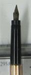 I have recently acquired a somewhat unusual fountain pen. I hope I will be able to post a couple of photos. The pen is marked 14 kt on the jump ring. The barrel and cap are comprised of yellow gold and what appears to be black plastic. It is 33/8 in long not counting the jump ring in the closed position. The jump ring is approx. another 1/4 in. The barrel and cap screw together. When the cap is removed you extend the nib by turning the end of the barrel one full turn. The nib is marked 14 with what appears to be a c and an a beneath the 14. the extended nib is 3/8 in long. There does not appear to be any filling mechanism. The rotating end of the barrel has two holes on opposite sides with what appears to be a pin through the drilled hole. I have some questions I hope can be answered here. Firstly, how do you fill the pen? What era would this pen be from? How would you establish a value (other than the gold value) for a pen like this? I have been unable to find a comparable pen anywhere. Thanks for any help you may be able to offer. This is my first time on any vintage pen forum. If any more photos would help I'll be happy to provide some.