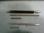 At top is the pen and its original refill and spring. Below is an emptied recent Paper Mate "Lubriglide" refill with both ends removed, a 1-13/16" length of 1/8" diameter dowel glued and crimped into the large end with 1/2" protruding (absolute minimum length that will let the pen work!), and with a D1-type minipen refill inserted into the small end. The D1 sits against the end of the dowel, and I crimped the PM refill slightly to hold the D1 in place. The pen works perfectly, and with an unbranded accommodation clip installed is now a daily carry pen.