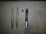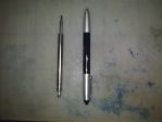 The previously-found refill is on the left, and the other came out of this Redipen. The left-hand Acme thread at the end engages a nut inside the cap of the pen to advance and retract the refill. A very solid design in a very solid (enamel over aluminum) pen. The "older" refill is just slightly shorter than the "newer" one, and may be adapted to hold a modern ballpoint refill one of these days.
