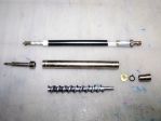 The core inside the outer tube is a (badly) machined Archimedes screw that was presumably meant to be turned to carry ink to the tip. There's even a coil-spring clutch mechanism to only let it turn in one direction! Nine parts in all, including the ball.