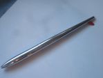 Cross, definitely, though it's marked "Virgin Atlantic Airways." The mechanism, finish, and refill are all clearly Cross, though the refill is 7/8" shorter than normal. Cutting down a blue medium Cross refill was the work of a minute, and it's a happy little fuselage!